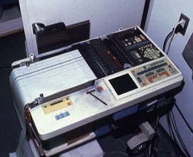 検査装置はデジタル化・商品化されておらず、脳波計を改良して検査装置として用いていました。記録は紙に行っていた時代でした。