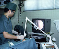 ほとんどの手術は、内視鏡下に経鼻的に(鼻の孔から)行います。 鼻アレルギーに対する内視鏡下レーザー治療、慢性副鼻腔炎(蓄膿症)、鼻茸(鼻ポリープ)、鼻中隔弯曲症などに対する内視鏡下鼻内手術などを行っています。